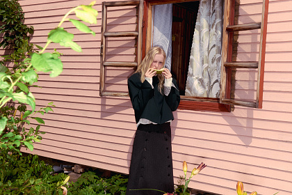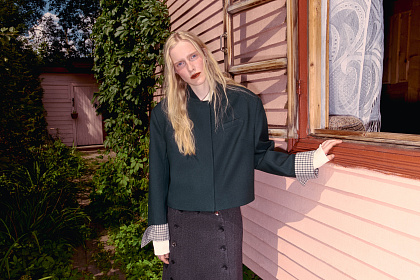 В коллекции «Шторм» каждая вещь - это убежище. Простое, по размеру, без лишних слов. Хлопок, шерсть, вискоза - материалы, которые дышат, греют, помнят. Изумрудный, как глубина перед разрывом волны; графит, как туча, несущаяся над городом; подклады сине-фиолетовых оттенков - цвета затишья, сумерек, когда шторм уже отступает, но ещё слышно его эхо.